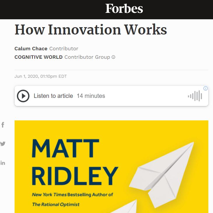 A Review of “How Innovation Works” by Matt Ridley