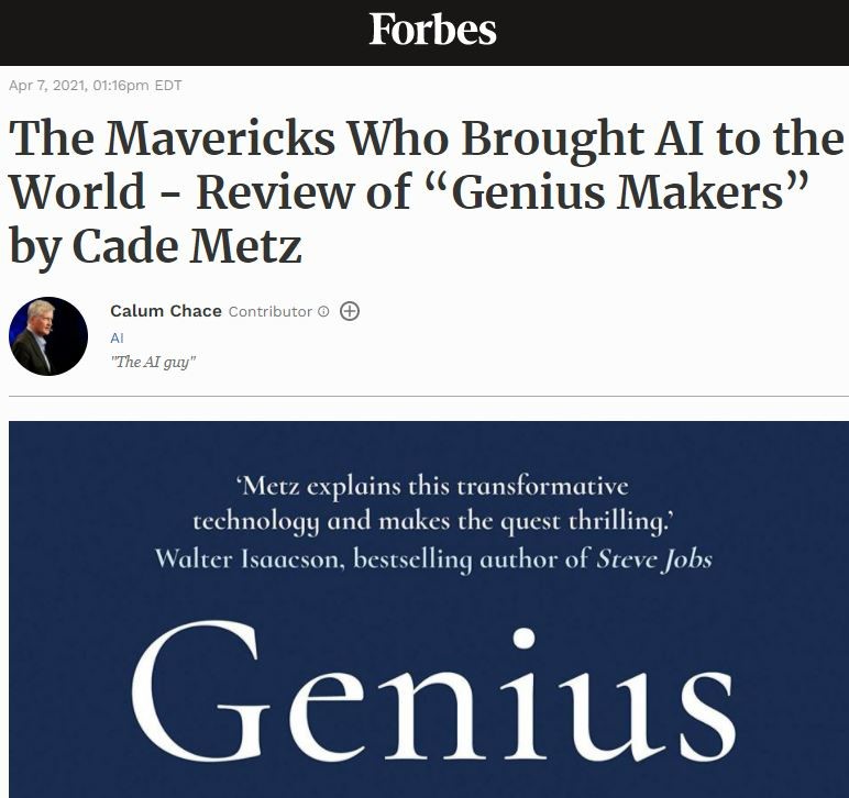 The book he has written about it, “Genius Makers” is based on 400 interviews conducted over eight years for “Wired” and “The New York Times”, plus another 100 carried out specifically for the book. Many of the people he has interviewed are larger-than-life characters, and given the egos involved and the prizes at stake, there is plenty of drama. If he isn’t already in negotiations with someone over the film rights, he probably should be.